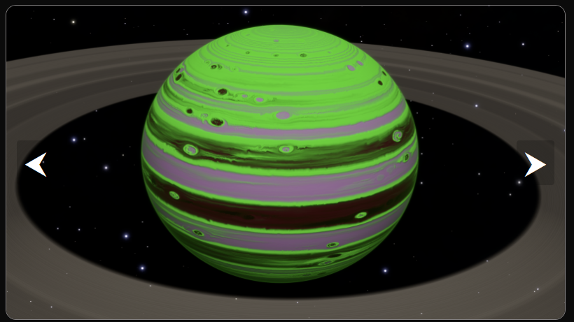 Green Gas Giants, "GGG"s for short, are a rare special planet subtype in Elite: Dangerous. Their surface color generation is bugged, due to an oversight in the color selection algorithm for gas giants. As a result of this bug, not all colors are implemented correctly. For example, the bright color green is used as a default planet color before it goes through calculations based on surface temperature, composition, etc. to correctly change the color. Some value in the gas giant's characteristics causes the color picker to choose a value outside of the intended range, which returns no change in color, remaining bright green.