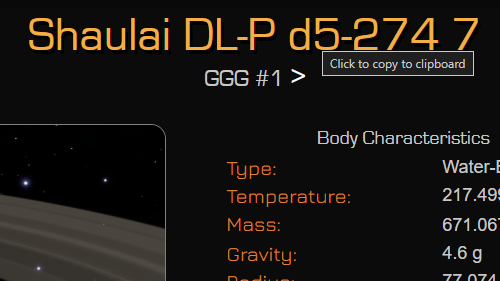 Each page for a GGG has that planet's name at the top of the page. If you click the name, it gets copied to your clipboard. Below the name is its GGG Number,
